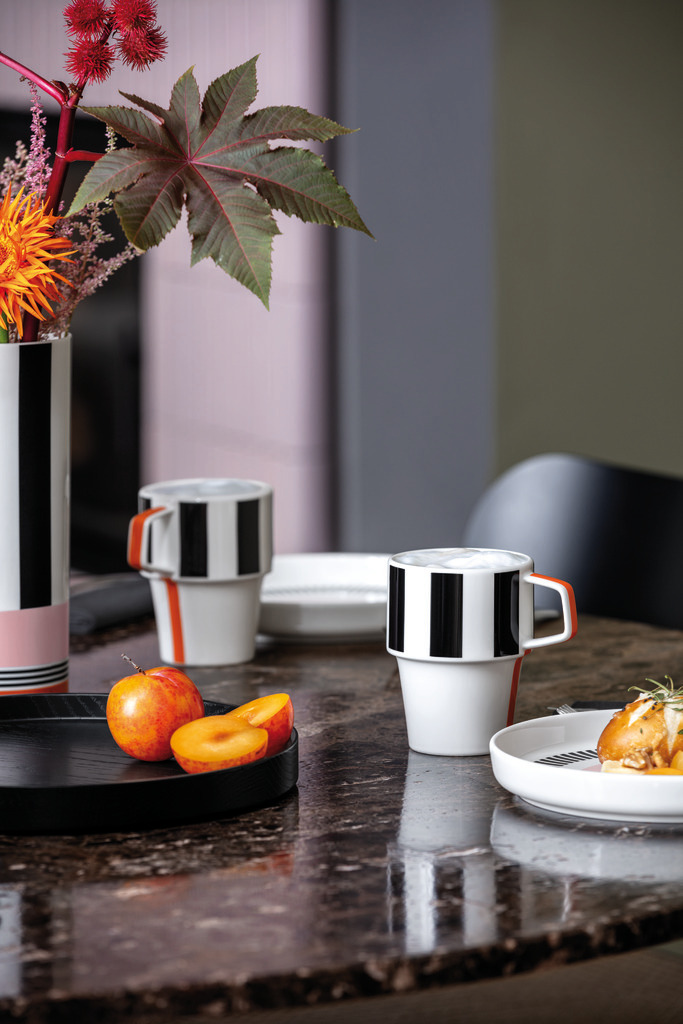 Memphis permette di portare a tavola mise en place dal tocco artistico e creativo: i piatti moderni con bordo rialzato danno vita a un elegante contrasto con le ciotole dalle forme scultoree, mentre i vasi – in versione piccola e grande – e i vassoi da portata possono diventare veri e propri pezzi decorativi per arredare gli altri ambienti della casa.